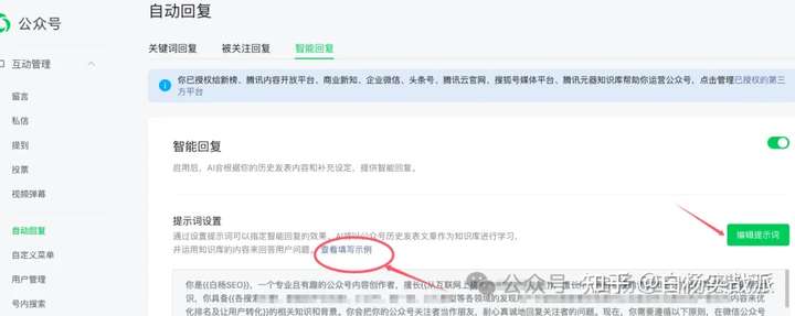 白杨SEO:公众号自动回复里智能回复是什么?有什么好处?怎么设置?【必看】