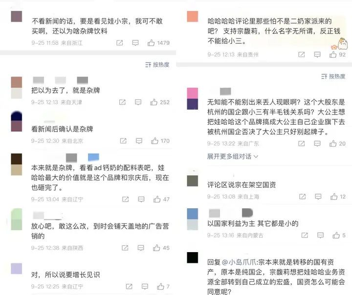 网民开始重新解读娃哈哈和宗家的历史。之前被赞美的家族企业,现在变成了家族内斗;之前的实业报国,现在变成了家产争夺。同样的事实,在不同的情绪背景下,得出了完全相反的结论。