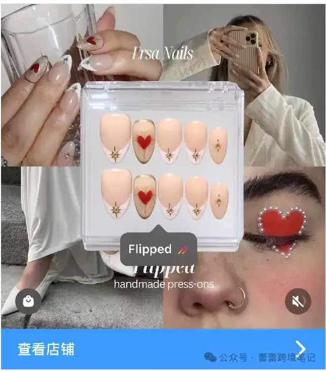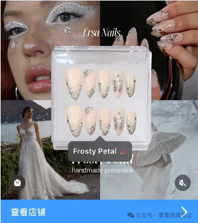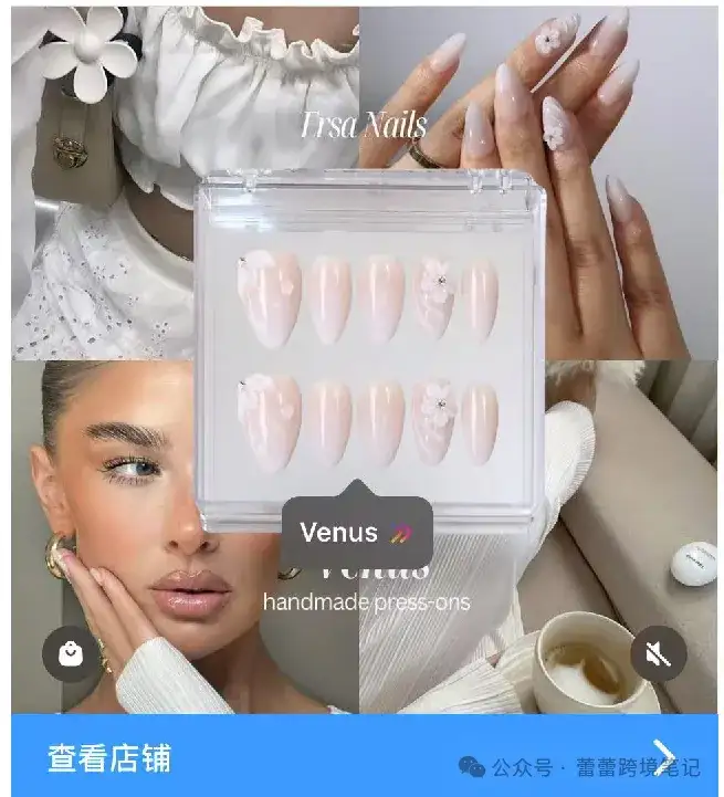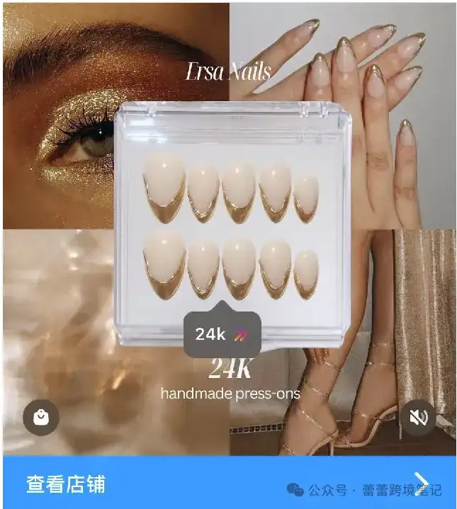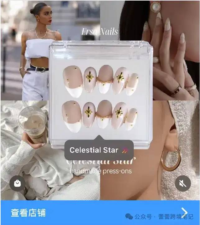 发了这个穿戴甲的广告图,每个广告都有搭配场合的服饰,这样用户一眼知道这个款配什么场景。这点非常重要,你的产品具体到款式,在什么场景化下试用?