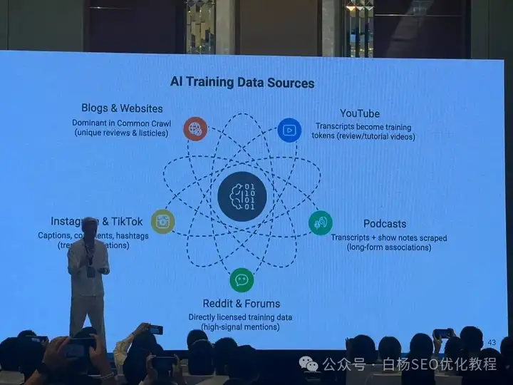 - AI 的数据源分 2 类:预训练数据(如抓取到的网页、YouTube、instagram、TikTok、Podcasts、Reddit和论坛)、实时召回的数据