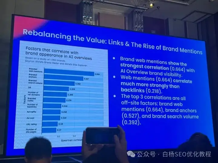 - 影响 AIO 中曝光的几个指标:品牌提及、品牌锚文本、品牌搜索量、DR、外链域名量、品牌流量等