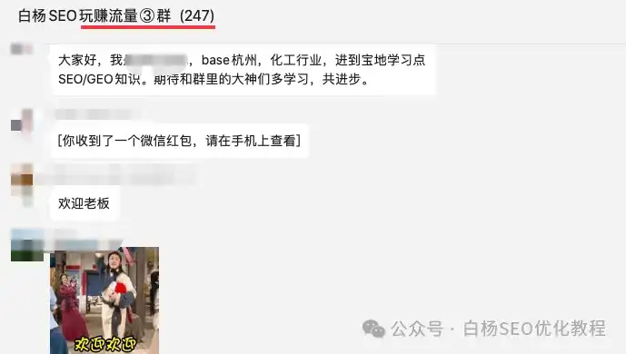 白杨SEO于2018年4月创建了一个付费的SEO交流群,目前7年过去了,已经有三个群共计1200+人。也从原先只是网站SEO优化交流扩展到微信抖音小红书等新媒体SEO,甚至包括当下AI搜索GEO等的全网搞搜索流量交流群。