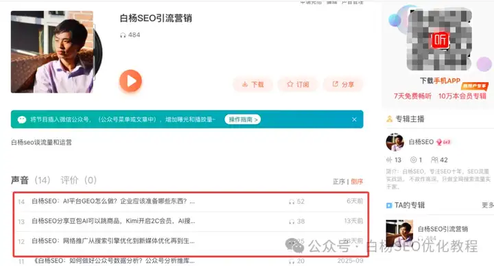 比如白杨SEO会把公众号内容同步转播客发小宇宙,喜马拉雅等,小红书,抖音,视频号短视频,直播都有在做搜索流量。
