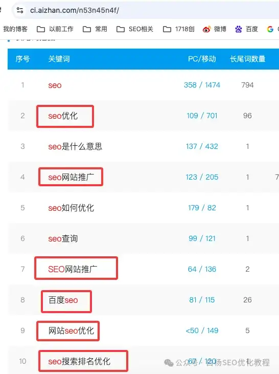 因为我做的是SEO顾问为主,有一些SEO训练营回放课程售卖,所以SEO优化,SEO网站推广,百度SEO都可以是我的流量词。而像SEO是什么意思、SEO查询等有流量,但跟我业务太远,所以我不会去选。