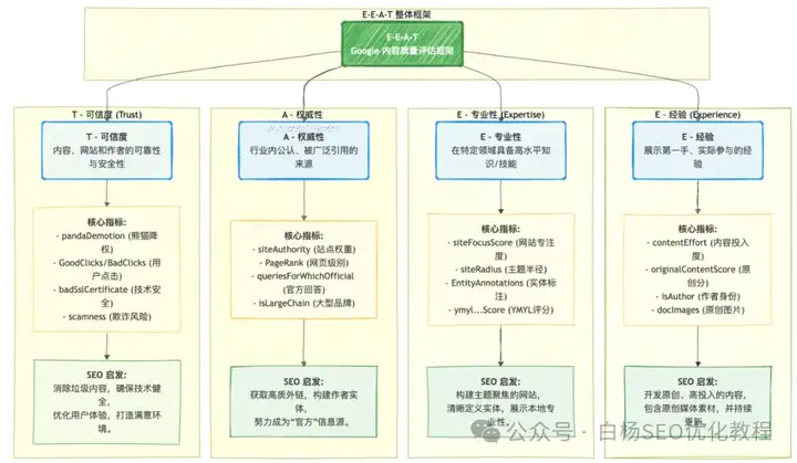 这表明 E-E-A-T 是一个整体性、相互依存的系统,而非简单的排名因素的叠加。