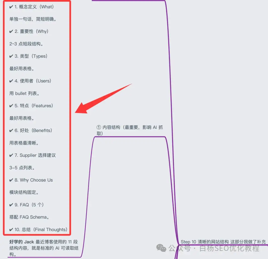 3)分布指南:目录结构,写一个总结式内容。比如本文海外GEO实操15步方法分享(从话题调研到针对AI优化全流程),我再发个图你就懂了,中文的,你做英文写英文即可。