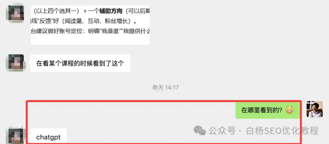 也给白杨SEO粉丝同步一下,白杨SEO国内AI工具用得比较多的是豆包、千问,海外用的比较多的是chatgpt(免费版)。当然chatgpt也会引用我的内容了,这是别人搜索截图我,如图: