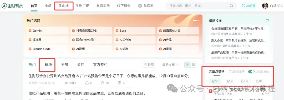 白杨SEO补:上面提到这个生财有术,目前是3365一年的付费圈子。如果你不在生财,可以加白杨SEO微拿3天免费体验,也可以自己进生财3天看看,不满意可以退出来。
