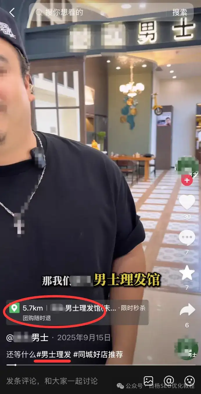因为这里的流量带有极强的地理位置意图,所以我们在短视频的标题和话题标签必须包含“城市+商圈+品类”等关键词。