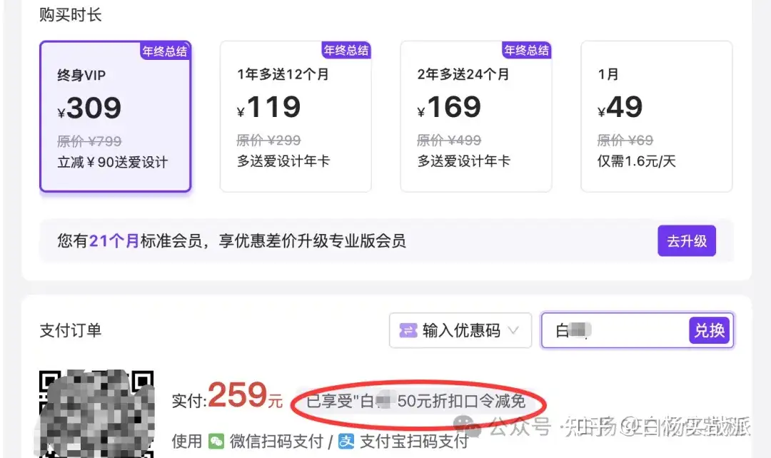 如果你通过白杨SEO的AIPPT专属优惠链接:https://www.aippt.cn/?seller=baiyang 注册后,在购买时填白杨SEO专属优惠码最少减10块,最多减50,如图。