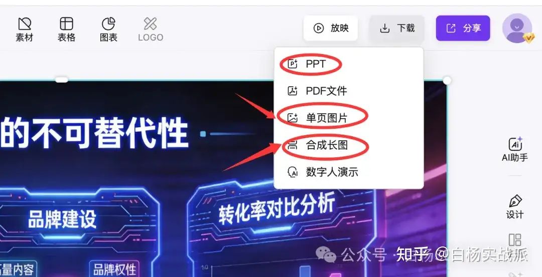 第五步,你可以设计修改,也可以直接觉得可以下载。如果你需要下载发小红书之类,可以直接单页图片下载。