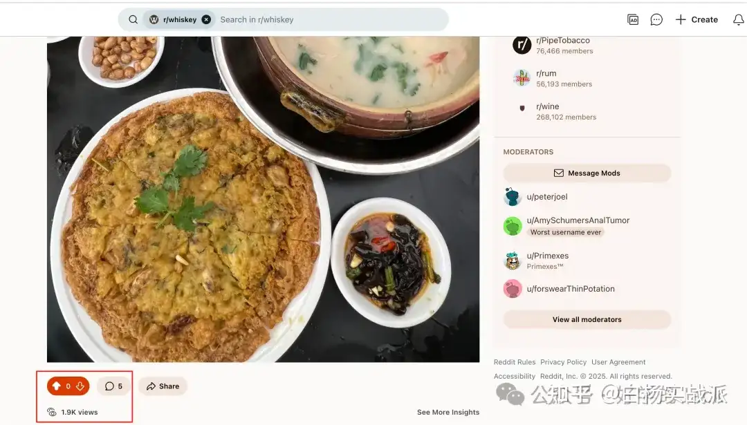 有些日常生活分享活跃的社群,比如说 whisky 社群,平时别人发帖也是很多人点赞的,会增加很多 karma。就是一张简单的照片,这种社群,可以日常发帖去增加karma,后期你去人多的社群,群规则多的社群,就会好很多。