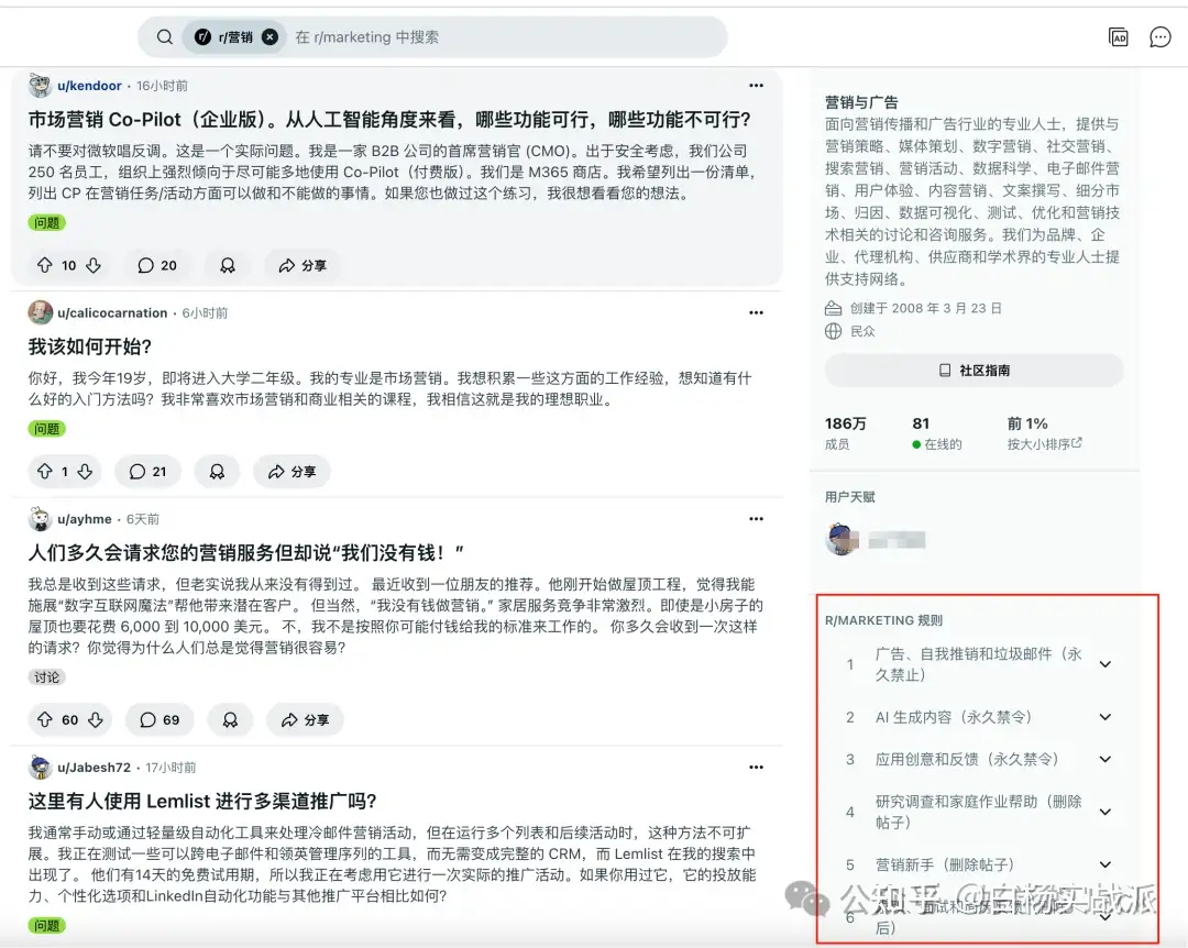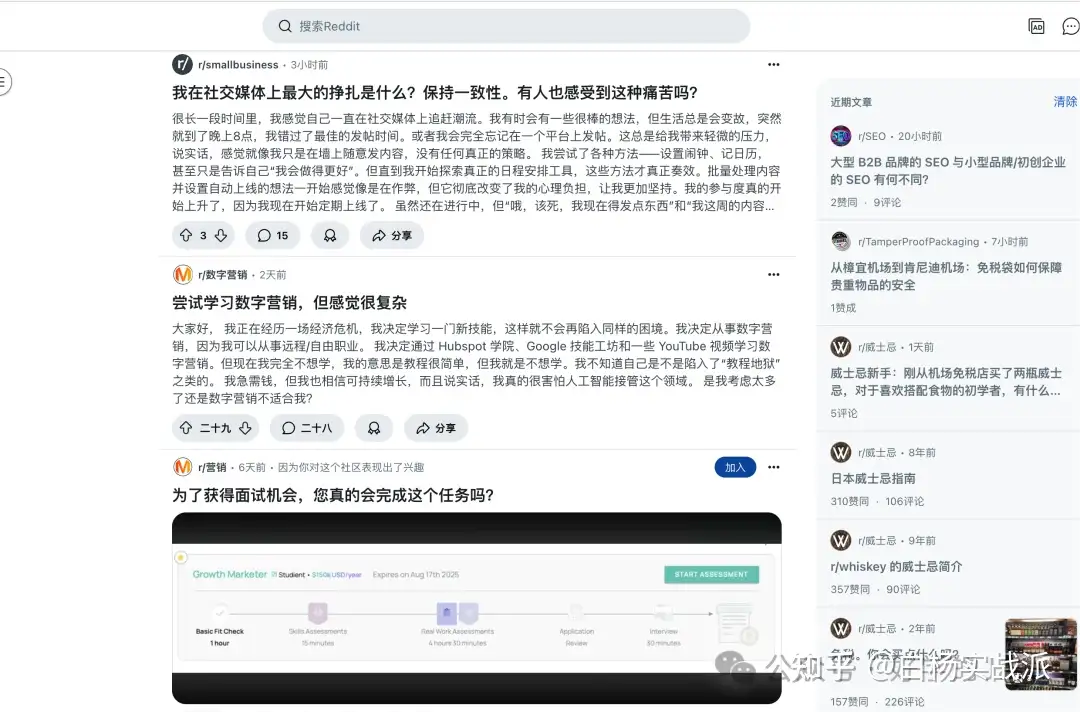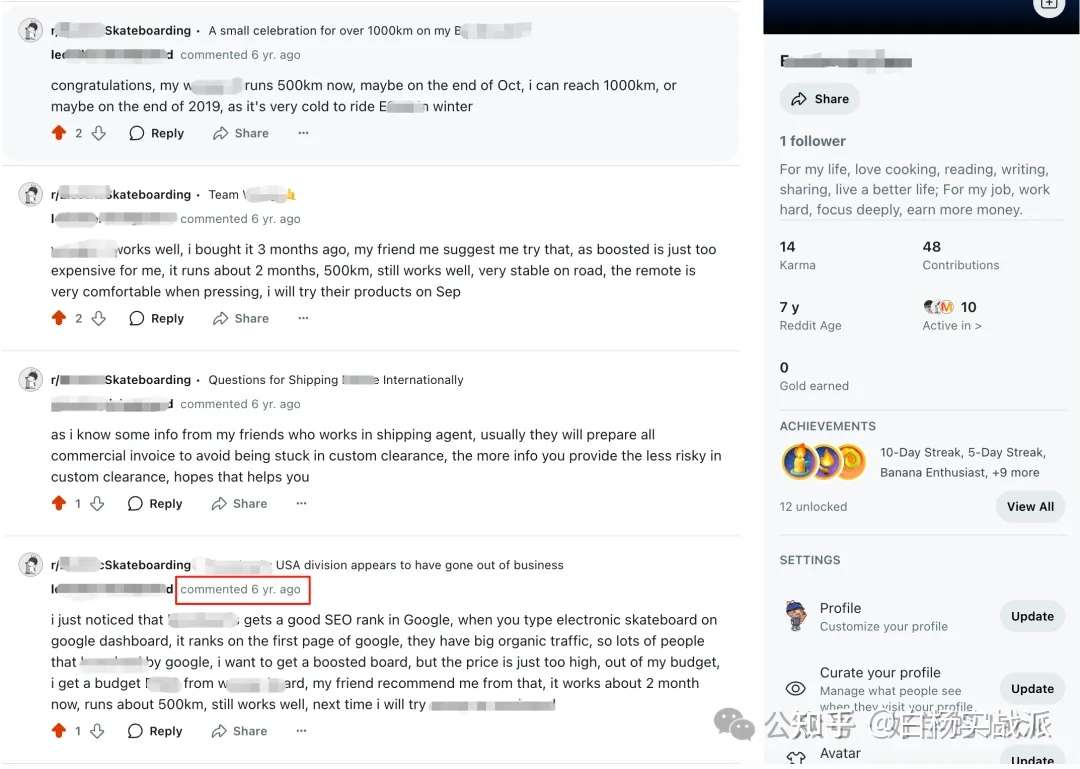要是搁以前我更喜欢短平快的玩法,就是去那种专业的Reddit社群去发帖或者回复别人,这种就显得很刻意,而且别人点你的账号看你全部是这种专业的话题,就是工作的性质,因为我现在是自己这种生活创业的形式会好一些。
