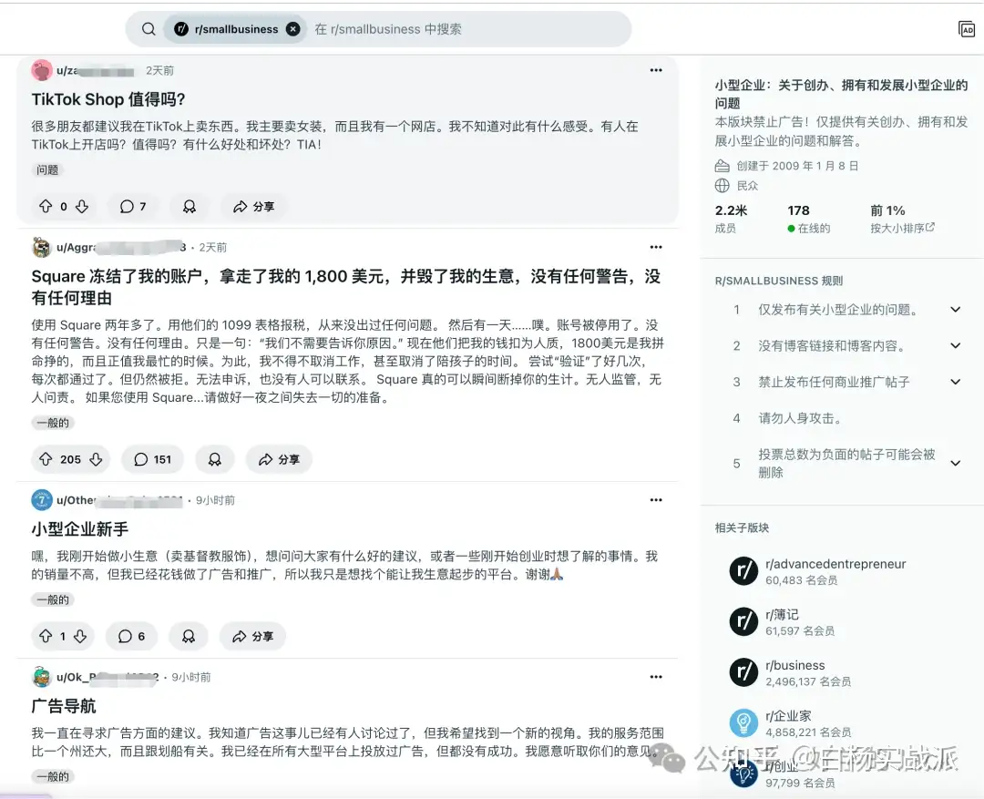 我最近经常去的有那个small business这个板块,small business板块就是全球各地的做小生意的老板聚集的地方,大家在那里分享自己的创业故事,大部分都是寻求安慰的。