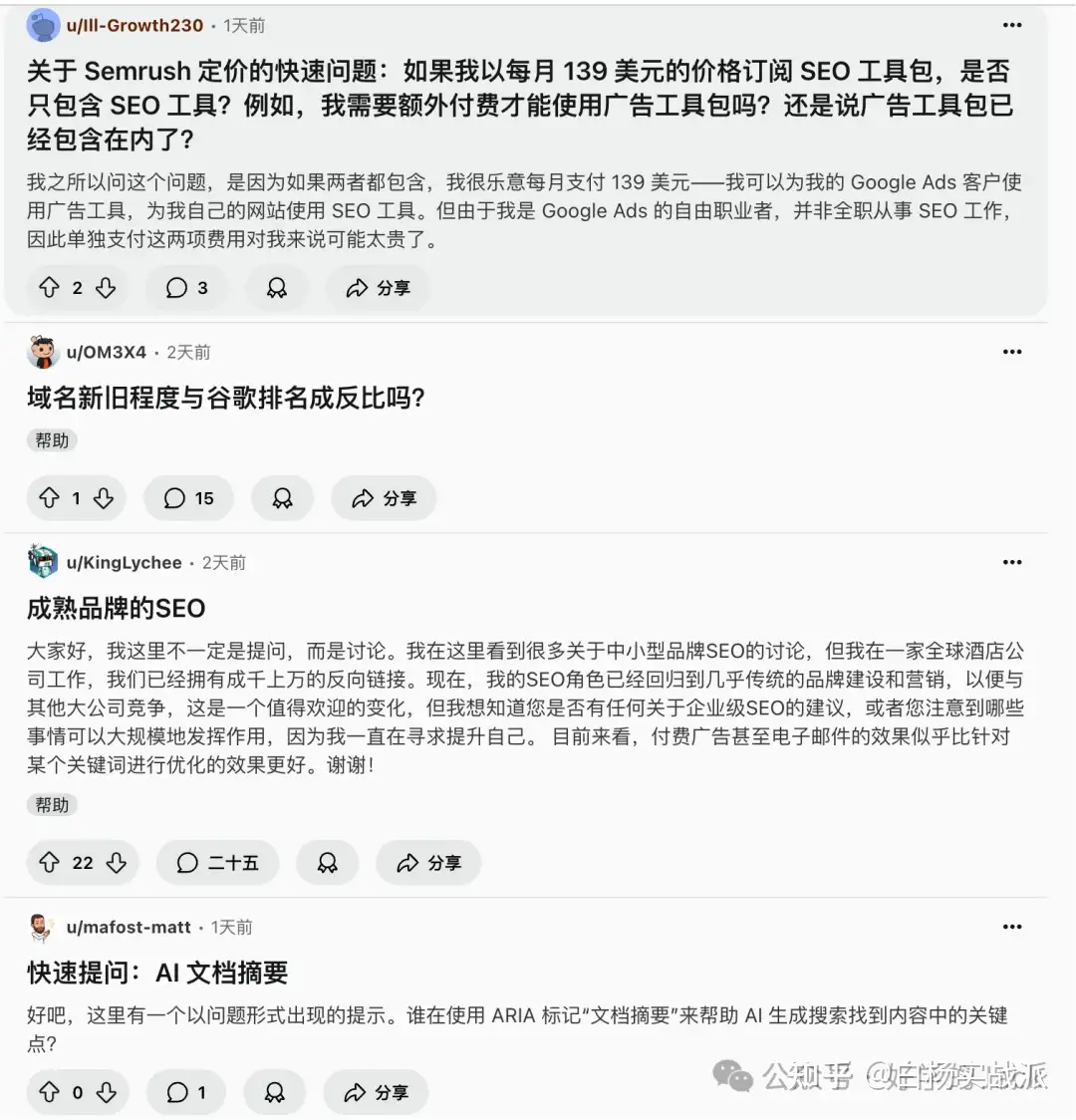 第二个Reddit 社群我最近经常去的是 SEO 社群,毕竟我自己也是做这个 SEO 的,看了一些 SEO 社群的帖子,感觉大家有些悲观,可能有蛮多是做服务的,不是做产品的,这种受到算法的影响很大,都得核心词排到前面才能获取流量和订单。