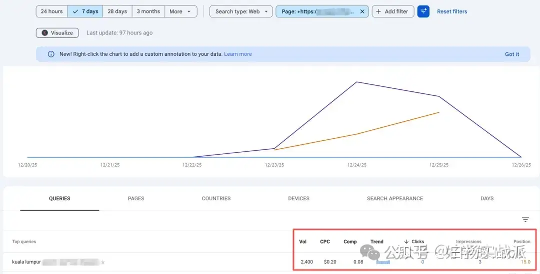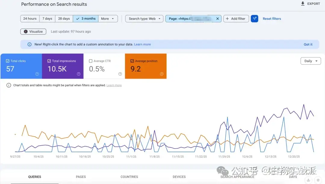 话不多说,先上干货 —— 下方附上谷歌站长工具的后台数据截图,以及谷歌搜索结果页面的实时截图,真实性一目了然。这个案例我之前也在自己的 SEO&CEO 交流群里做过分享,今天特意整理成完整的实操思路,和更多朋友聊聊这套打法的核心逻辑。