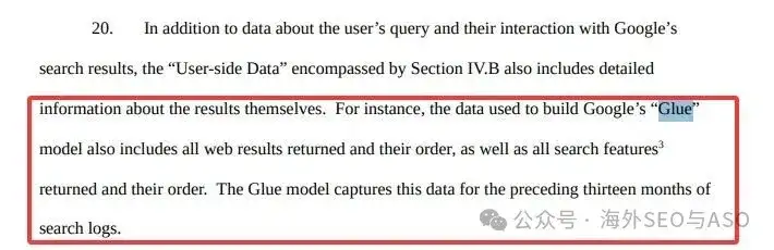 “Glue 模型的数据包括了过去 13个月的搜索日志。它不仅记录了用户的查询词(Query),还记录了页面上出现的每一个结果、每一个特征(Feature),以及它们的顺序。”