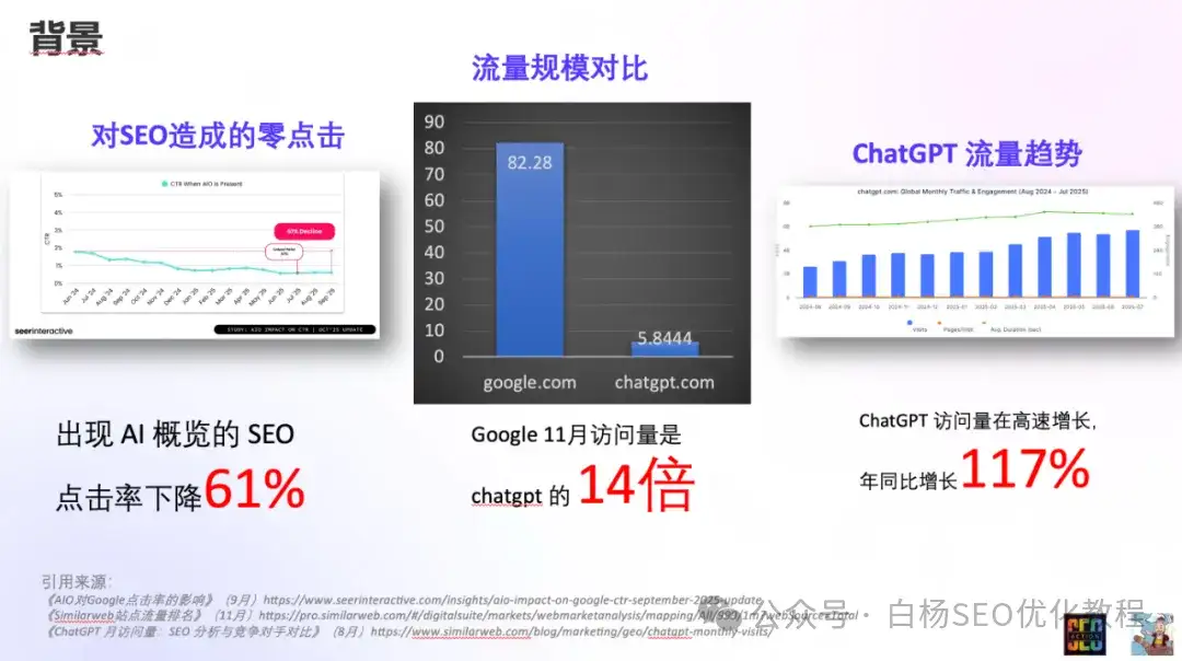 GEO、AIO、AISEO、AI搜索引擎优化与SEO有什么区别?为什么白杨SEO要去观察、研究和实战一些新的做流量方法?【必看】