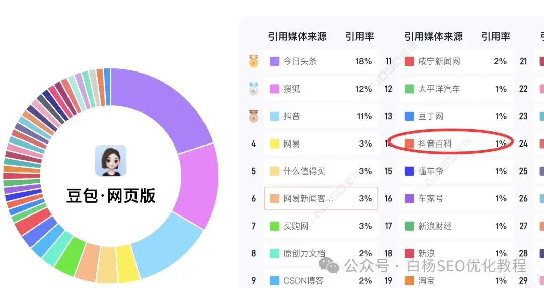 第五点,也是白杨SEO认为最重要的一点,有抖音百科词条可以在豆包AI搜索GEO优化会被优先提取和引用,是其中一个引用点,如图。