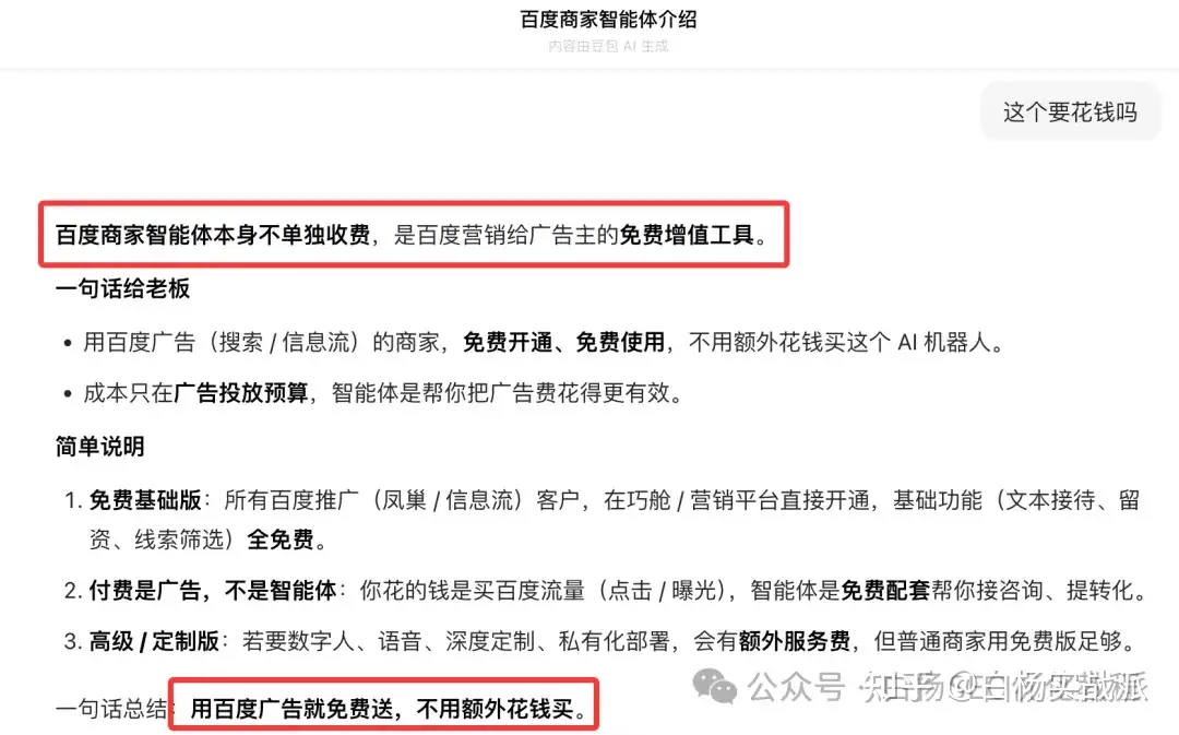 3、百度商家智能体要钱吗?