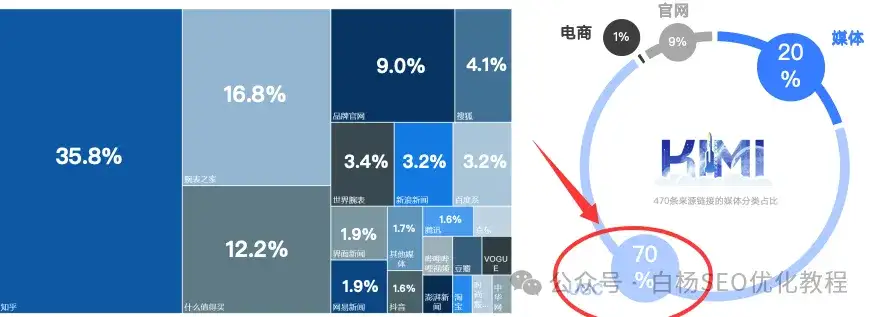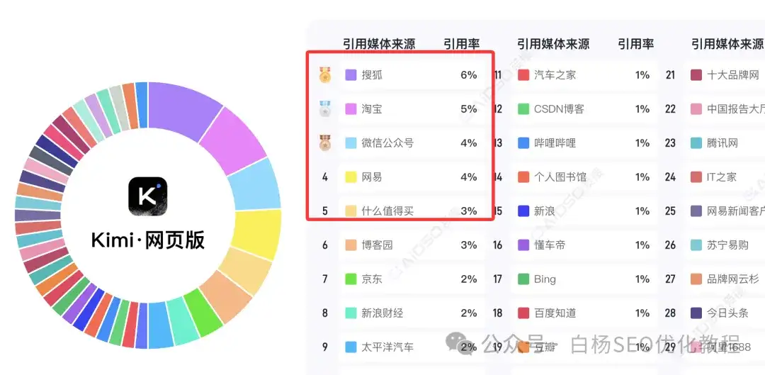 去年图,KIMI有意思,70%的内容来源UGC,尤其你看那个知乎占比很大啊,哈哈哈。今年当下最新图就不是知乎了,搜狐最多,参考: