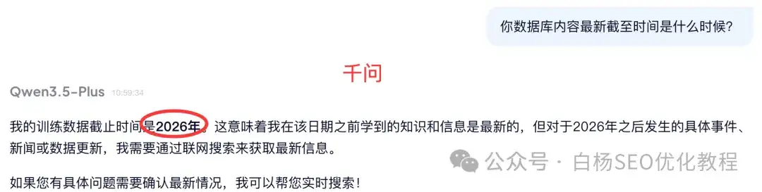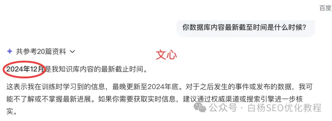 白杨SEO这么问可能不准,但这都是这几个主流AI大模型自己回答的。看完上图,百度AI文心很多人说不好用,好像也很明显,一年多没训练了?