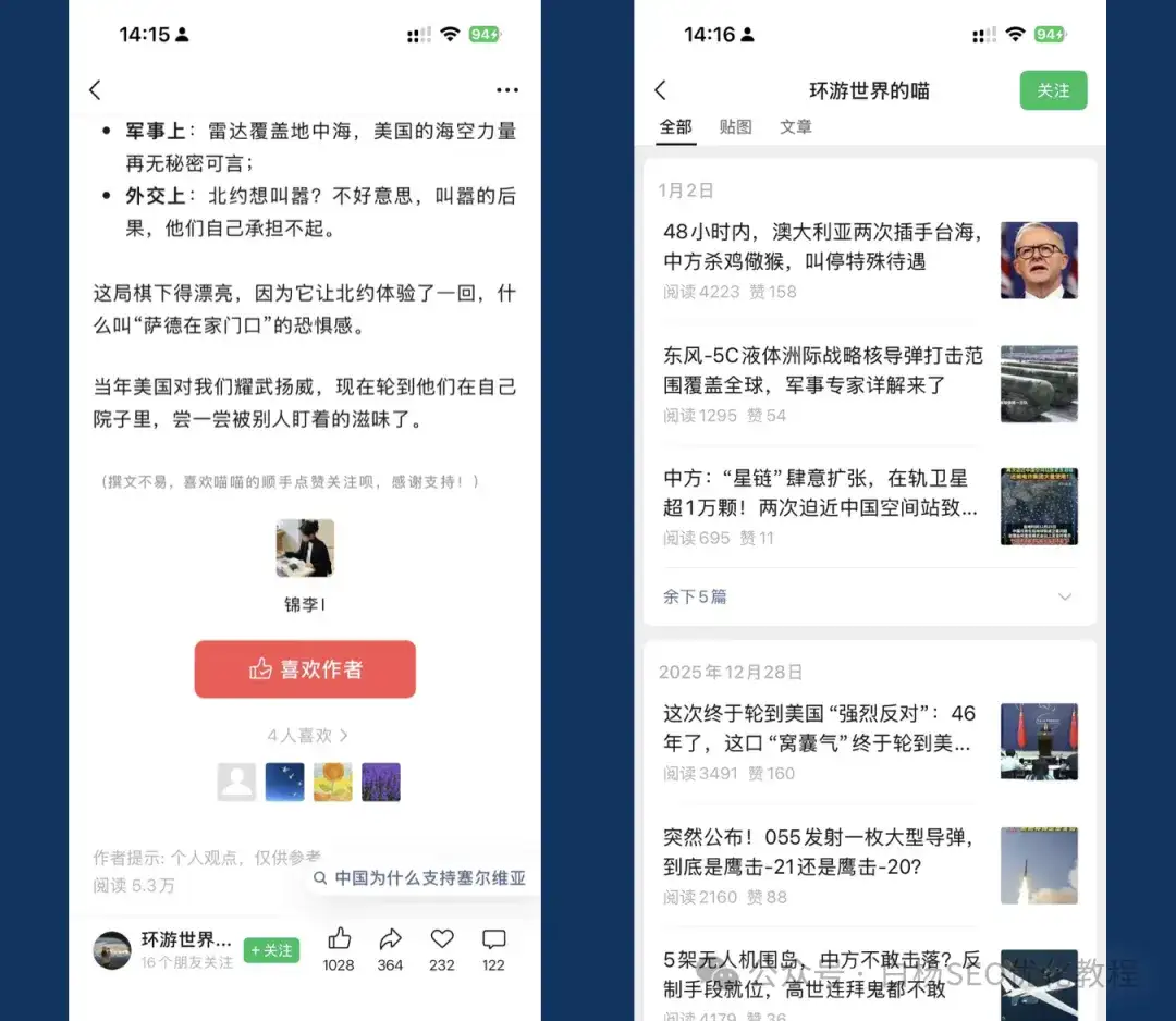 1、公众号爆文案例——公众号:环游世界的喵