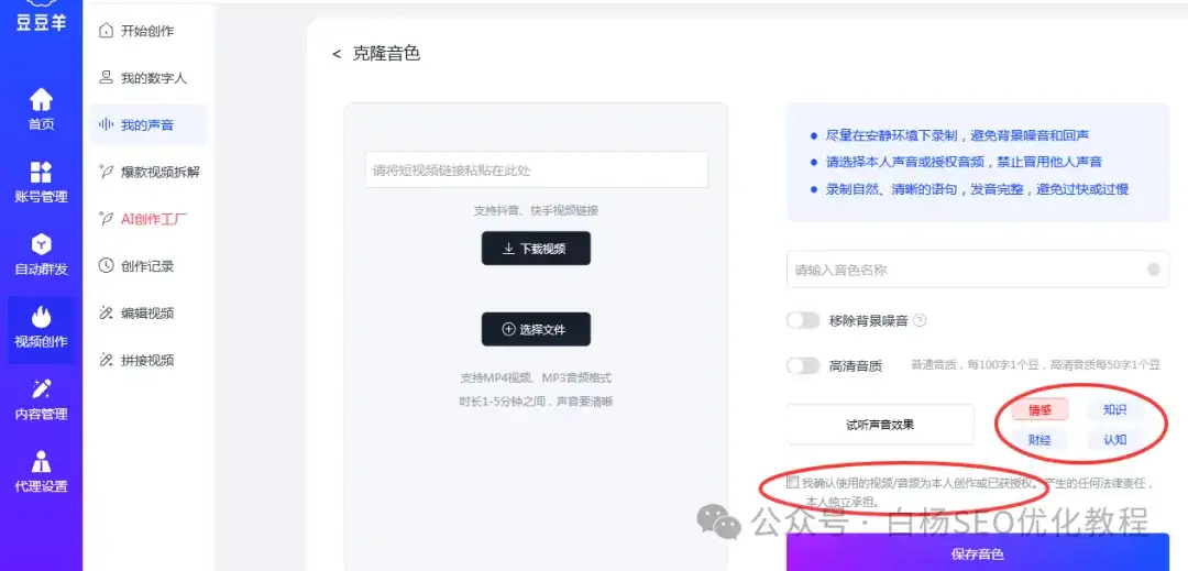 2)克隆声音,我们依旧可以找到短视频链接或者你自己录一段声音。