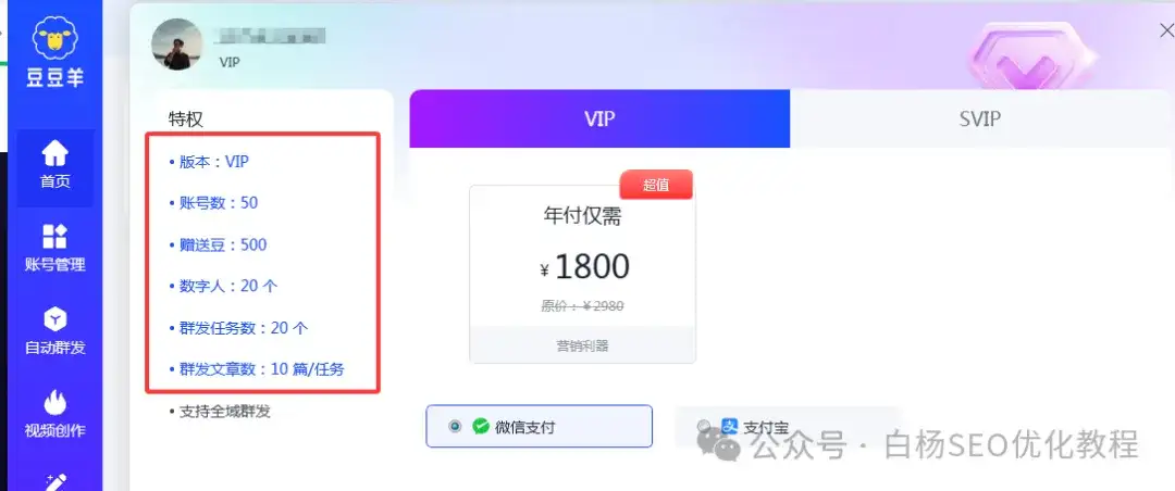 去年初刚开发出这个公号矩阵运营群发软件主要还只是公众号,而且价格最少三千多一年(通过白杨介绍推荐可以优惠)。