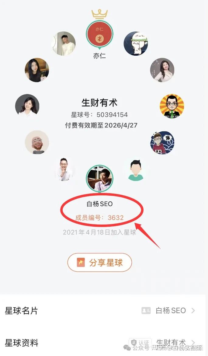 如果你通过我的分享加入了生财,欢迎来找我交流。我在星球里的编号是3632,搜索"白杨SEO"就能找到我。(PS,下面那个时间是星球后面重新计算,我2019年加入的,看编号就知道,嘿嘿)