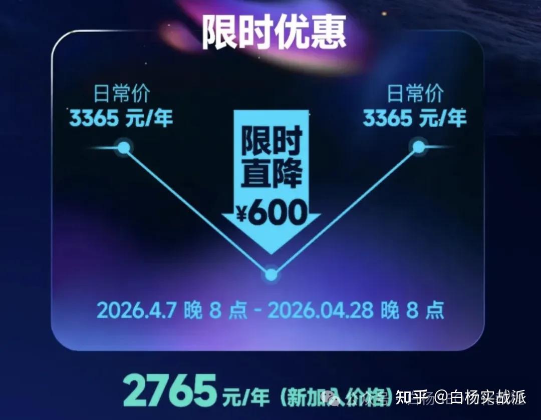 新用户:2765元/年,目前是年度最低价,比平时便宜600元