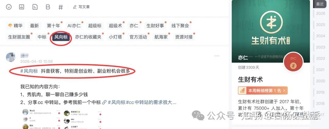 "风向标"是短平快的赚钱信息,每天刷一刷。不是为了每个都去做,而是培养对机会的敏感度。我看到过太多人靠风向标里的信息差赚到第一桶金。