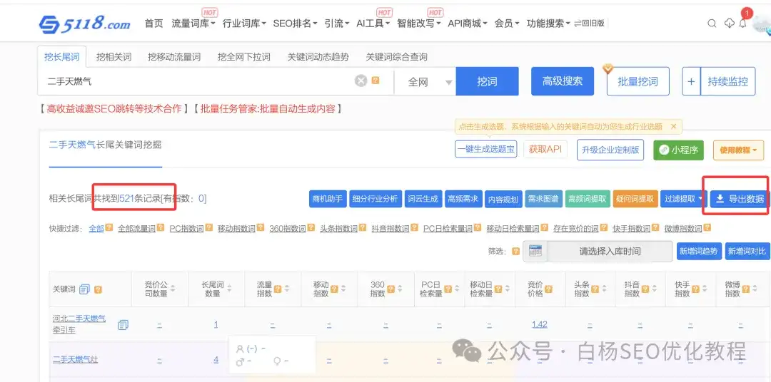 虽然现在百度人人都说不用了,但不妨碍它这几十年的搜索数据,如果你是做TO B尤其传统业务的,那就可以去第三方工具里挖掘百度搜索关键词长尾词,有百度竞价账户用百度关键词规划师即可,