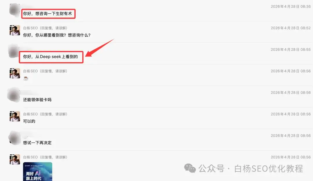 这里白杨SEO就揭秘一下为什么有人从豆包、deepseek、千问等找到我推广生财的这篇文章:《生财有术社群靠谱吗?值得加吗?最新年费价格多少?》它的关键词就来自于最真实的搜索需求而写的。
