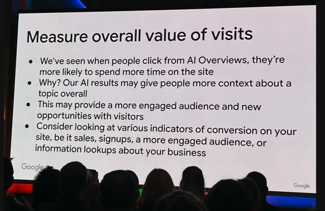 - 当用户从 AI Overviews(AI 概览)点击进入网站时,他们会在网站上停留更长的时间。
