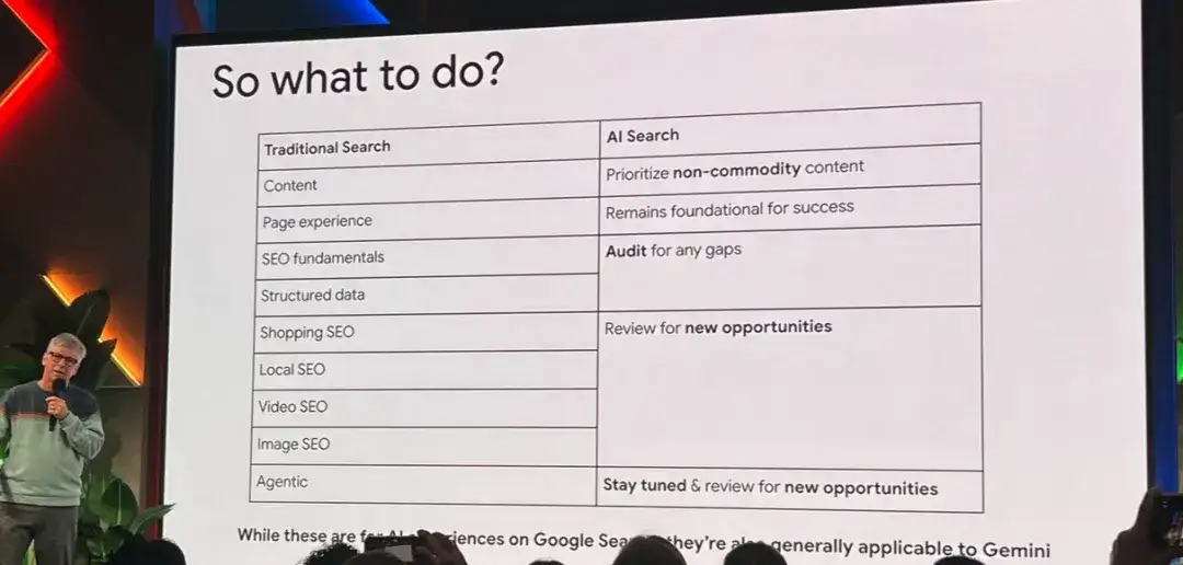 | 传统 SEO 的关注点 | 在 AI 搜索时代该怎么做(GEO) |